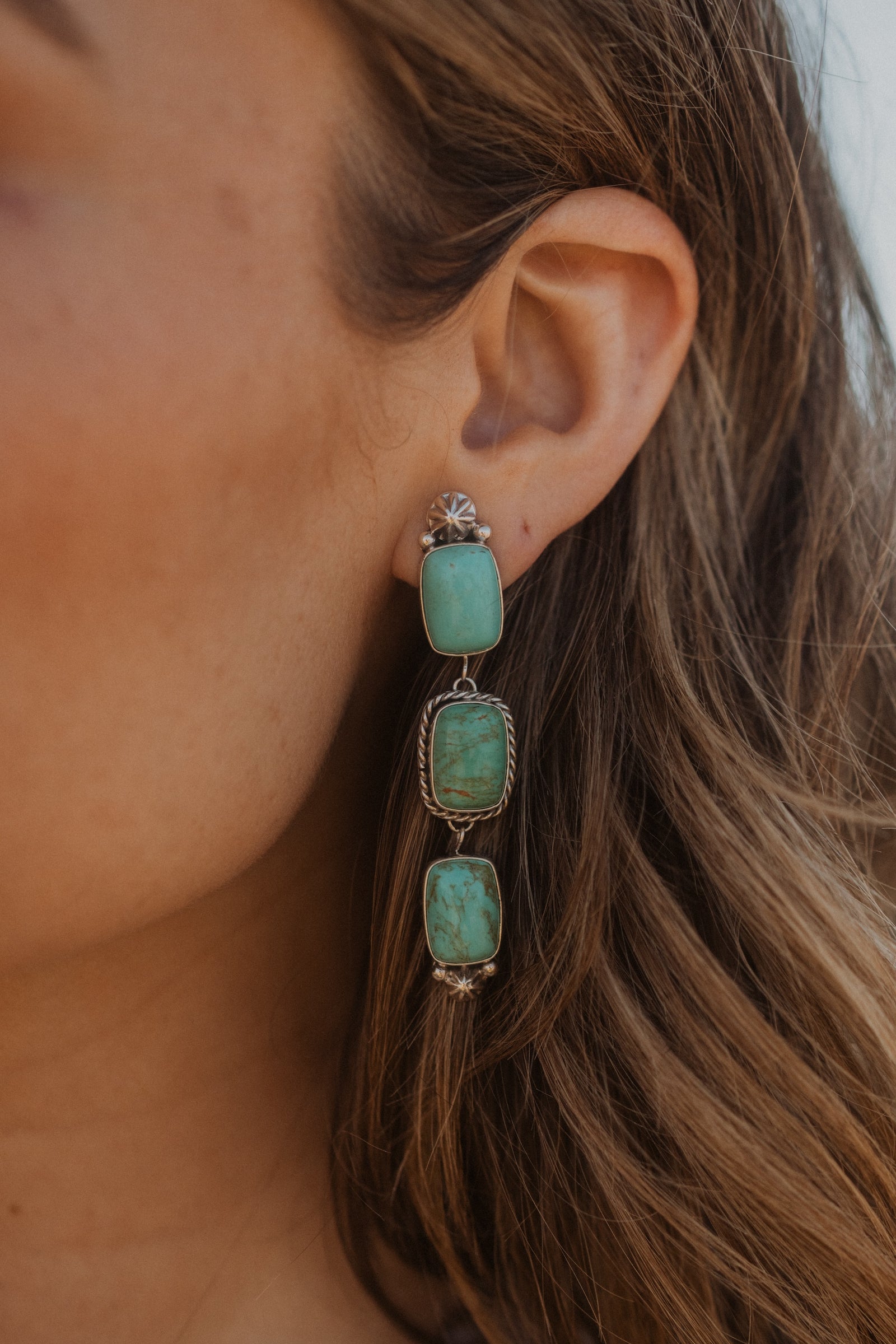 - 3 Turquoise stones on each ear