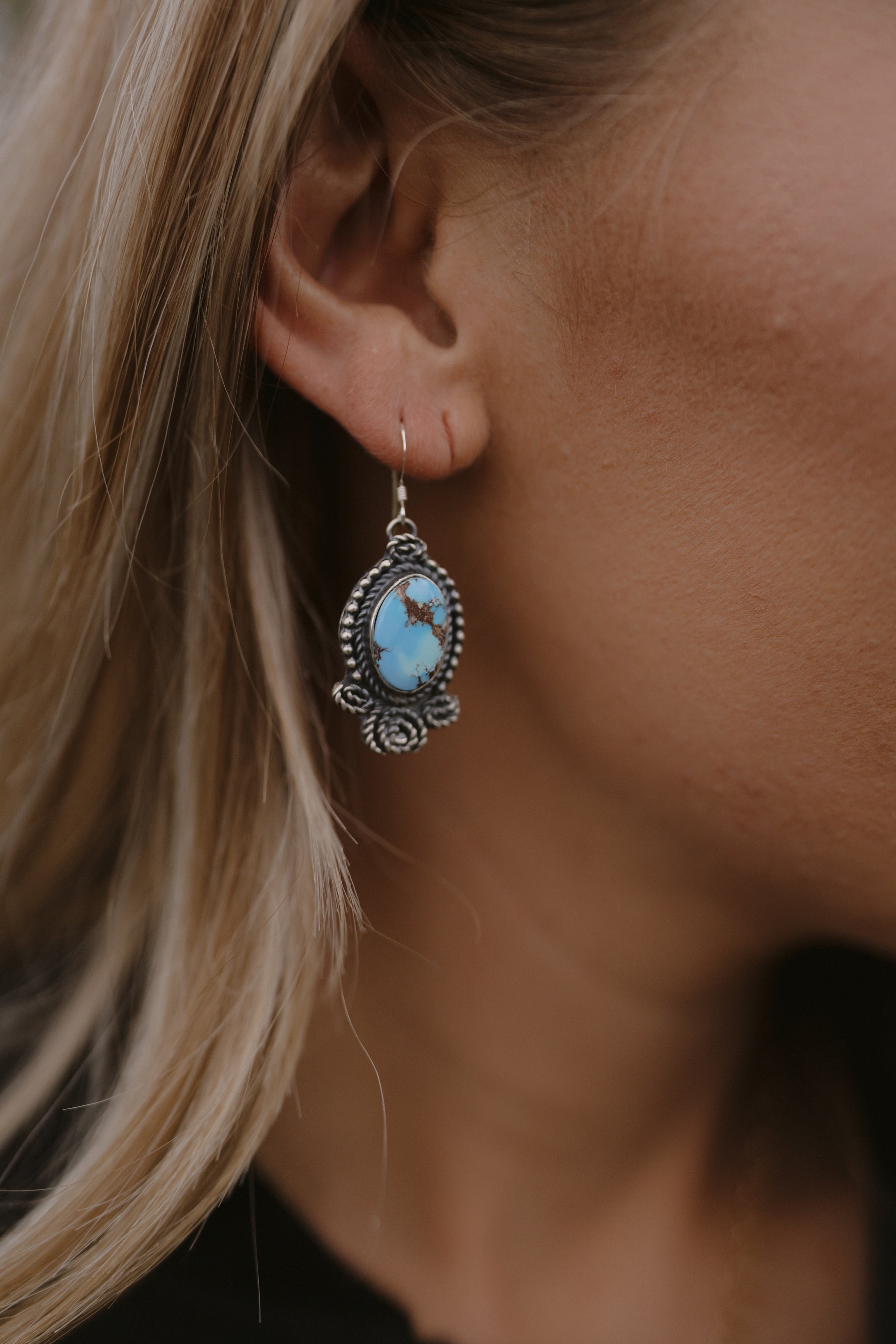 - Golden Hill Turquoise stones (striking light blue coloring)