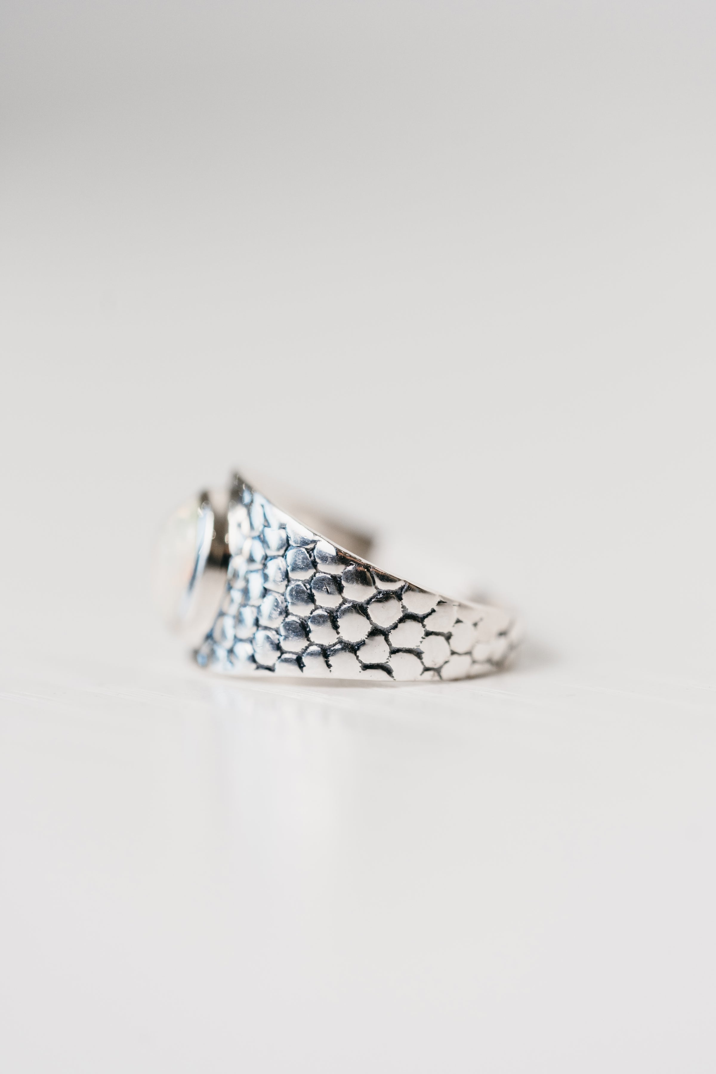 The coolest textured band with a shiny stone in the center!