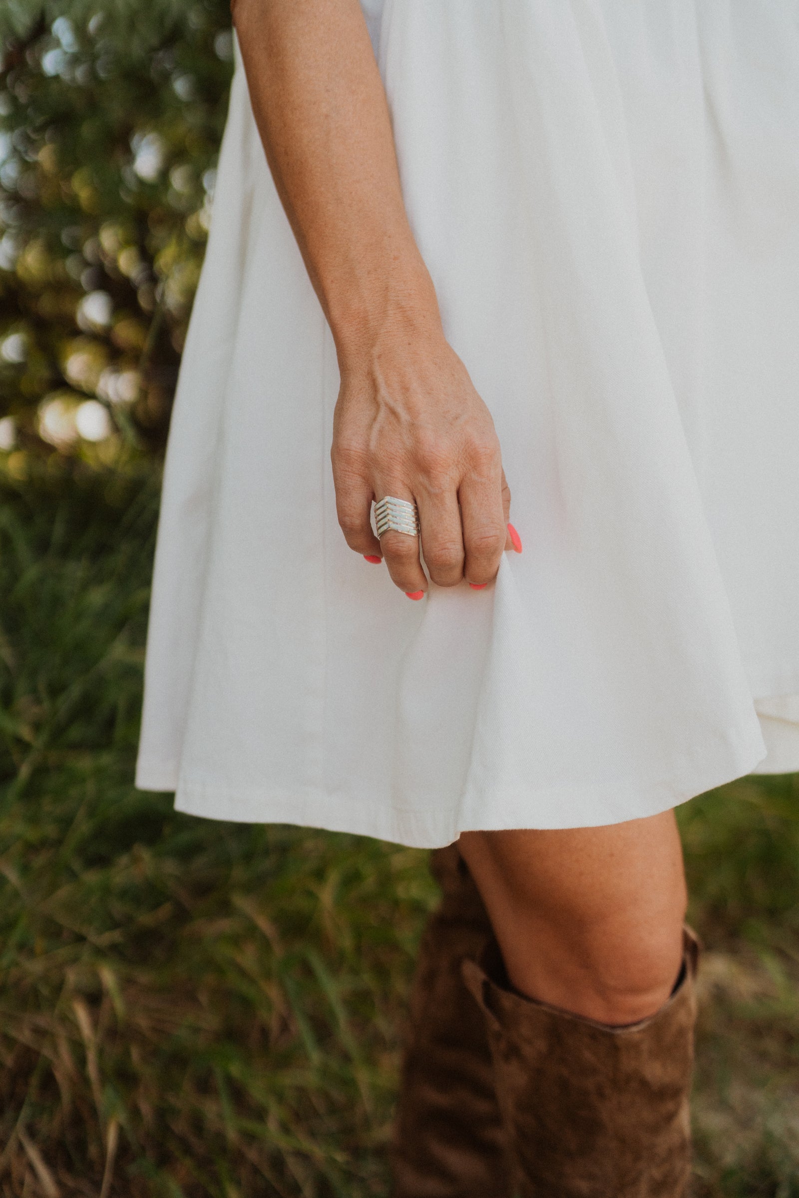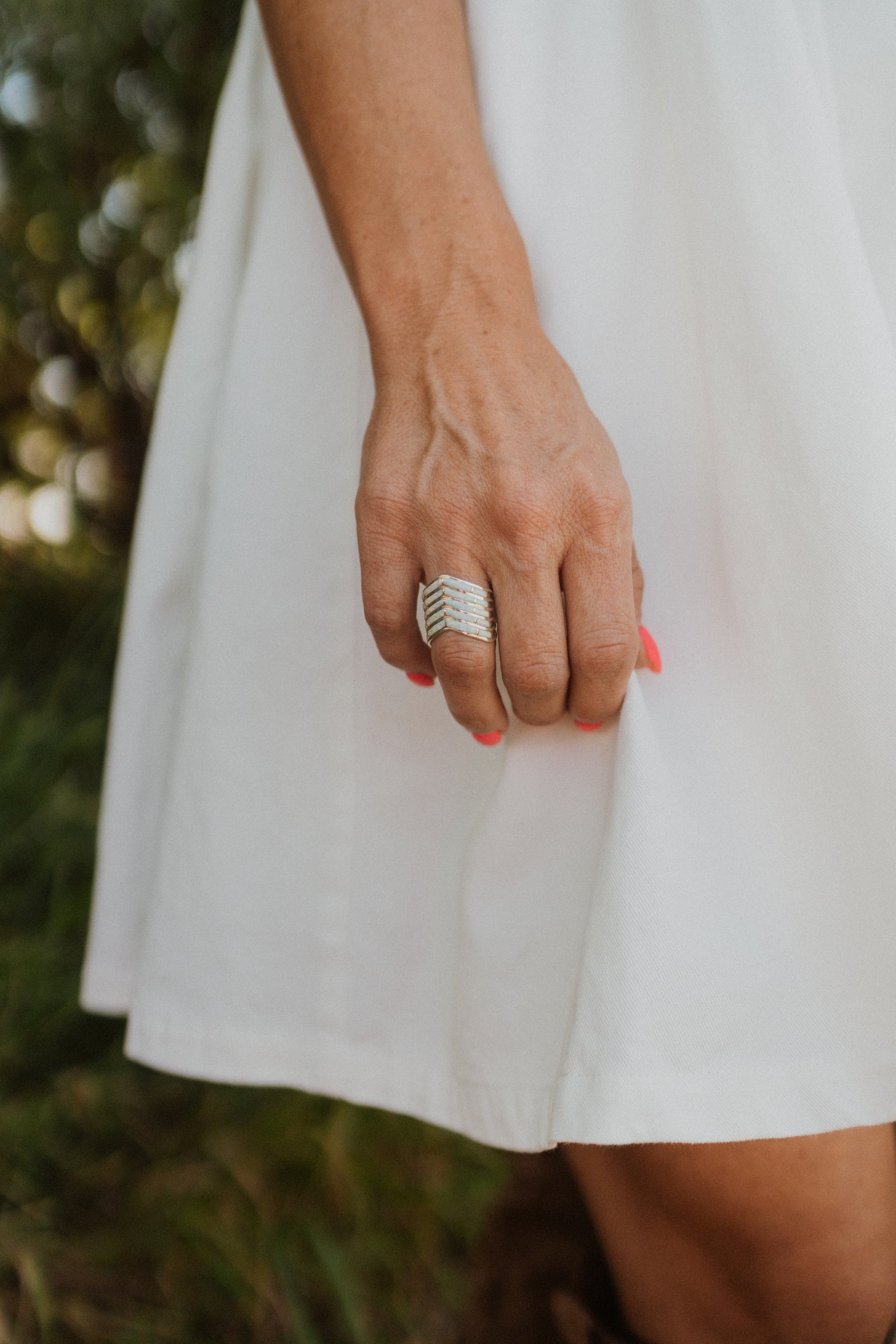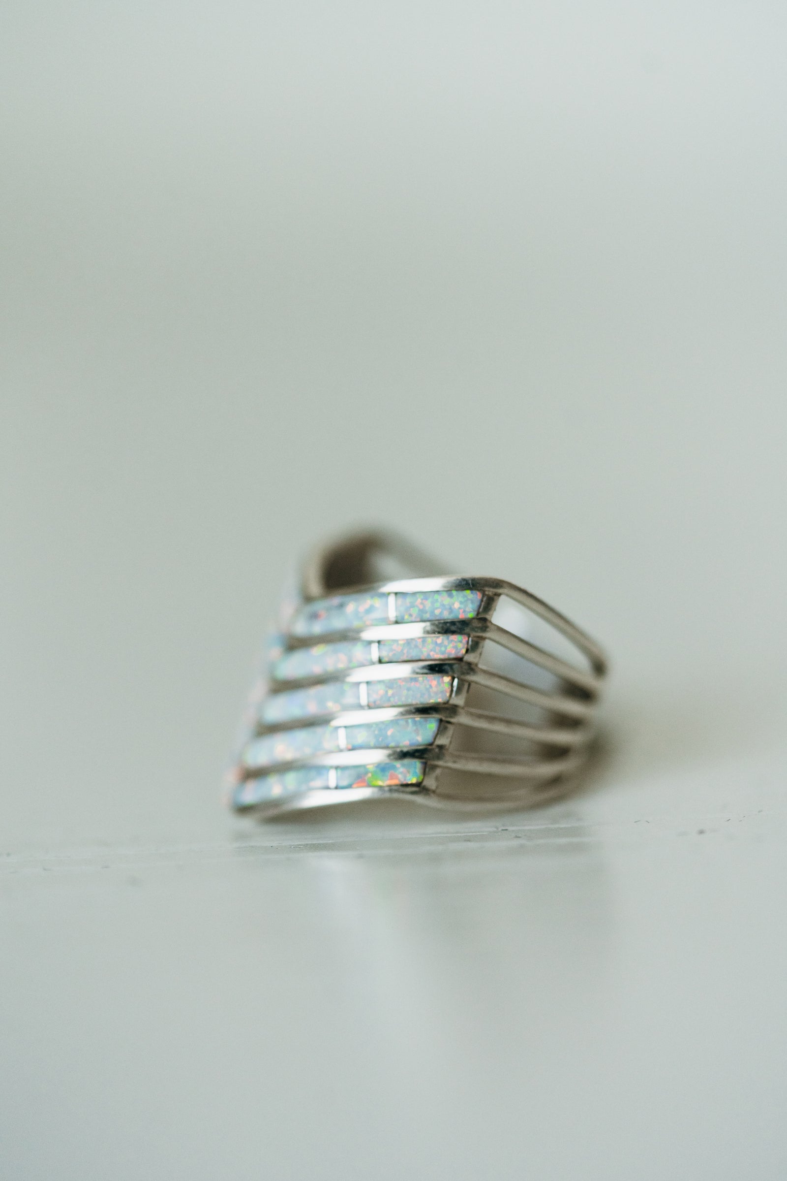5 Bar Slanted Ring | White Opal