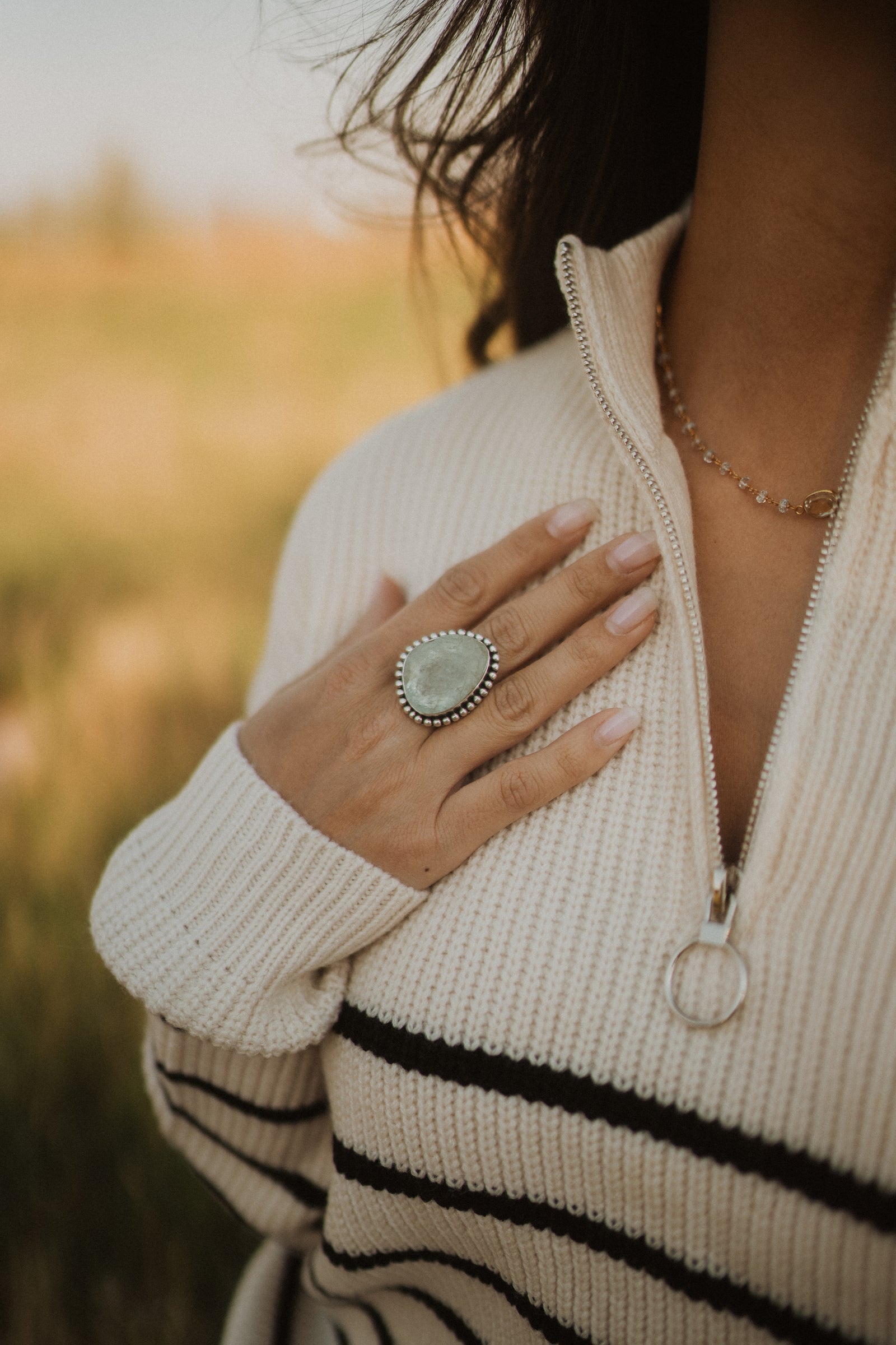 The Betsy ring is named after someone pretty great! The Rough Aquamarine stone is so unique. It is the perfect show stopping ring!