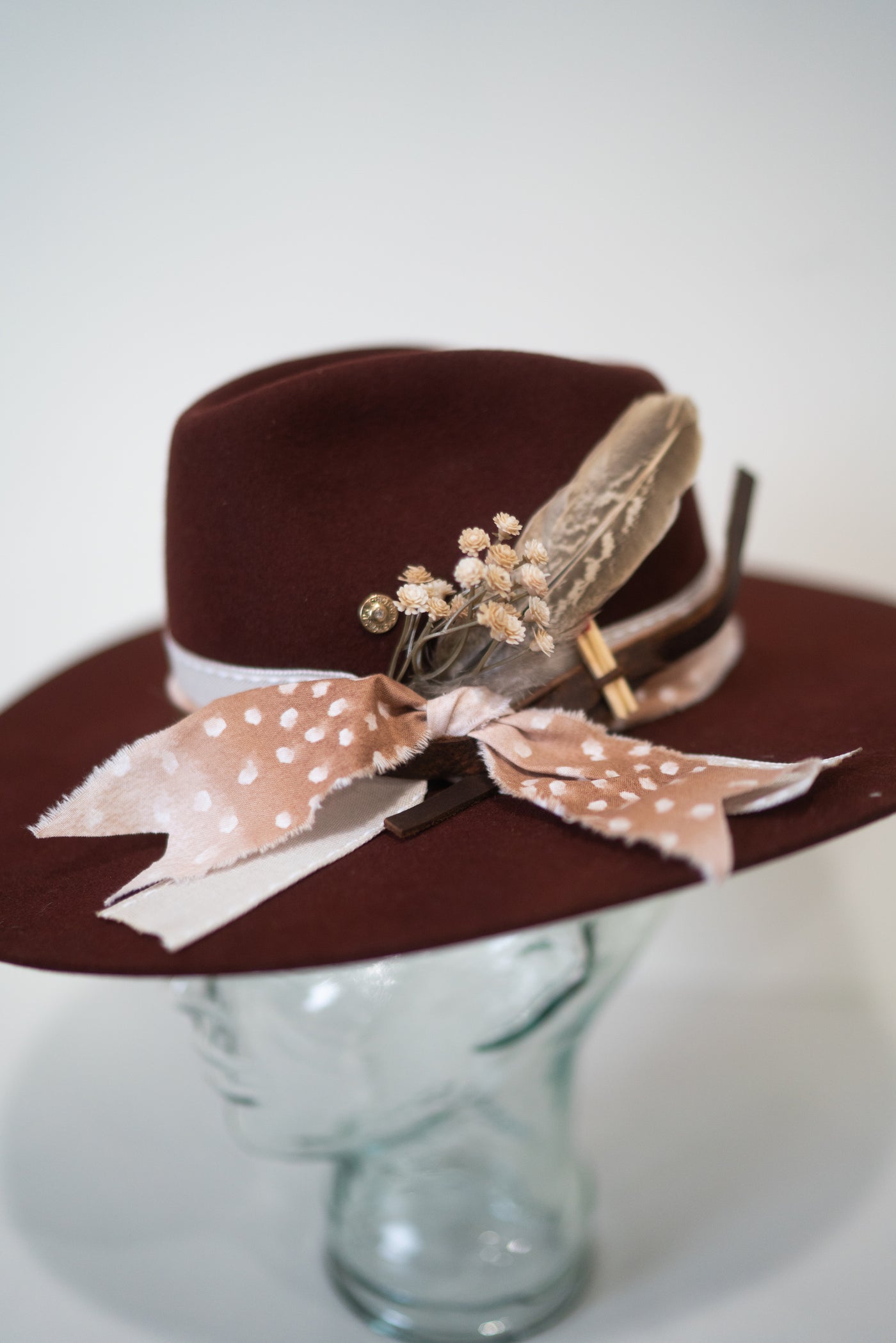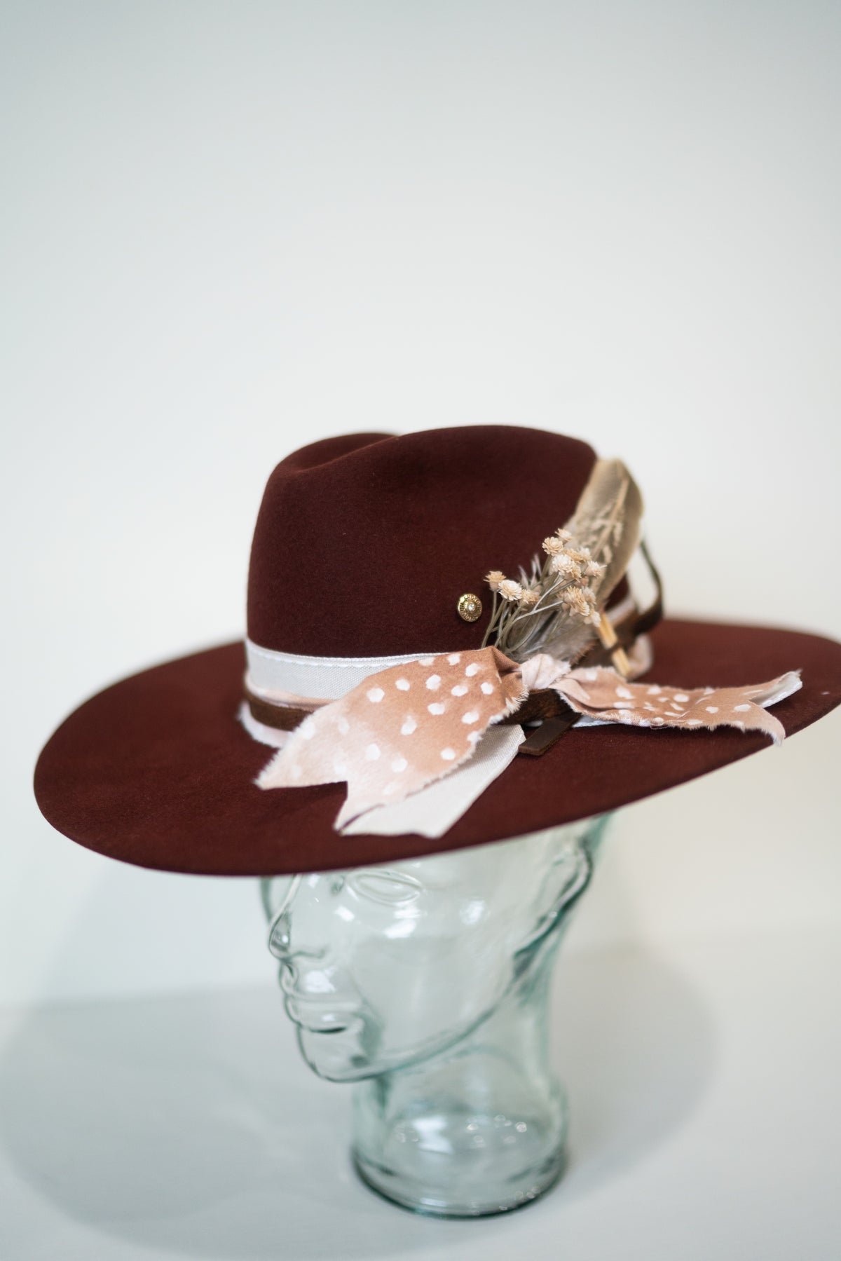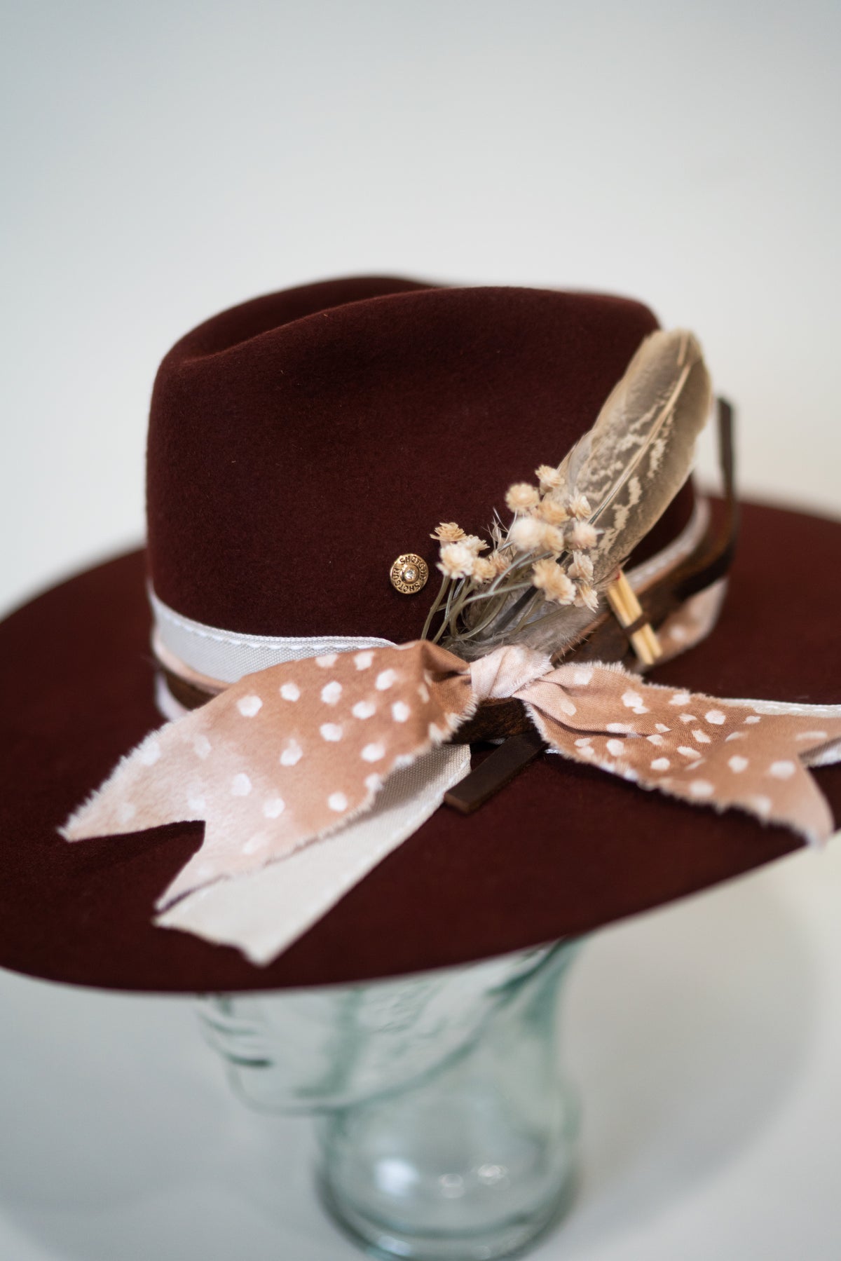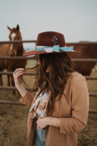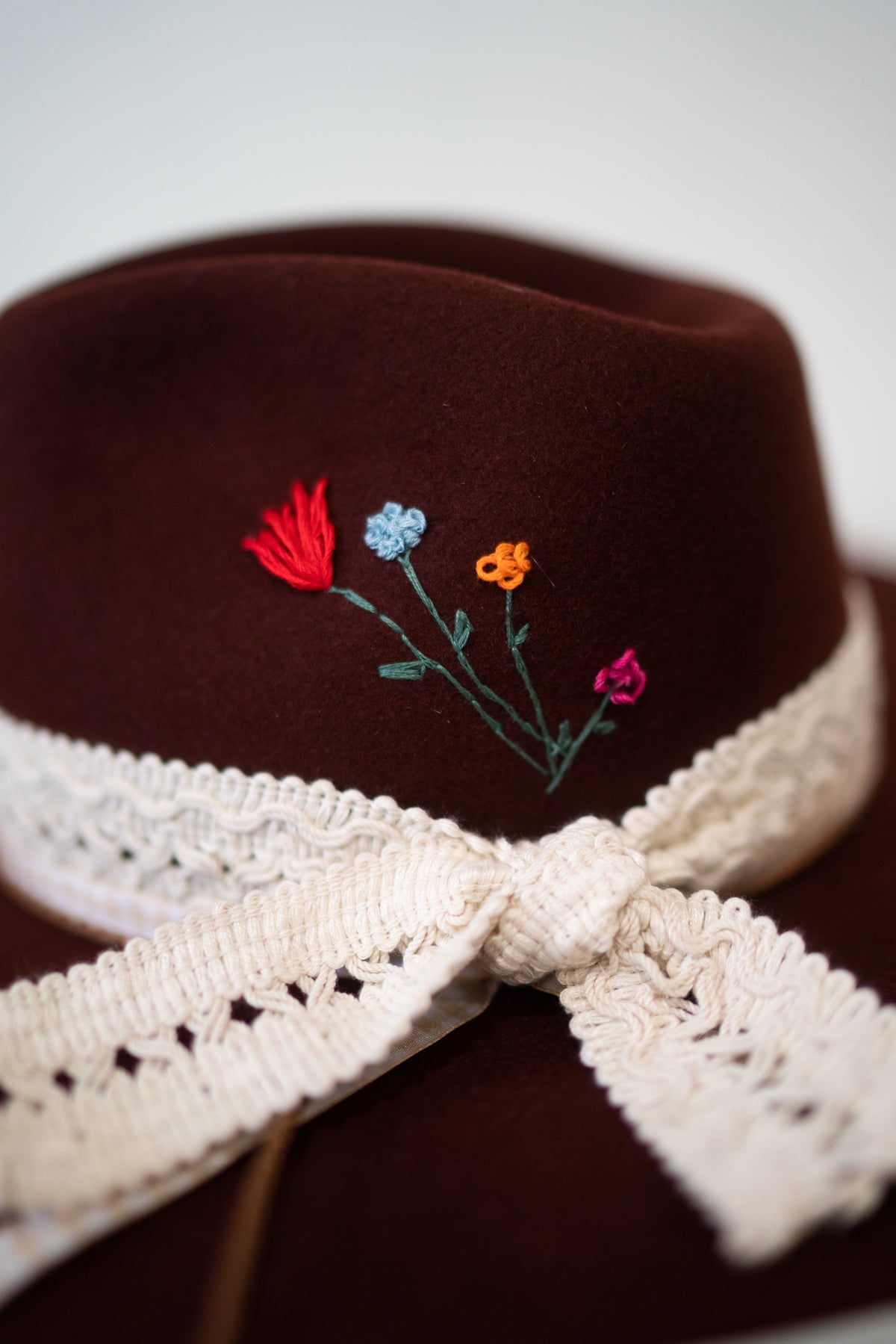 Our embroidered hats are hand stitched and finished with the most amazing hat band. Each hat was crafted beautifully.