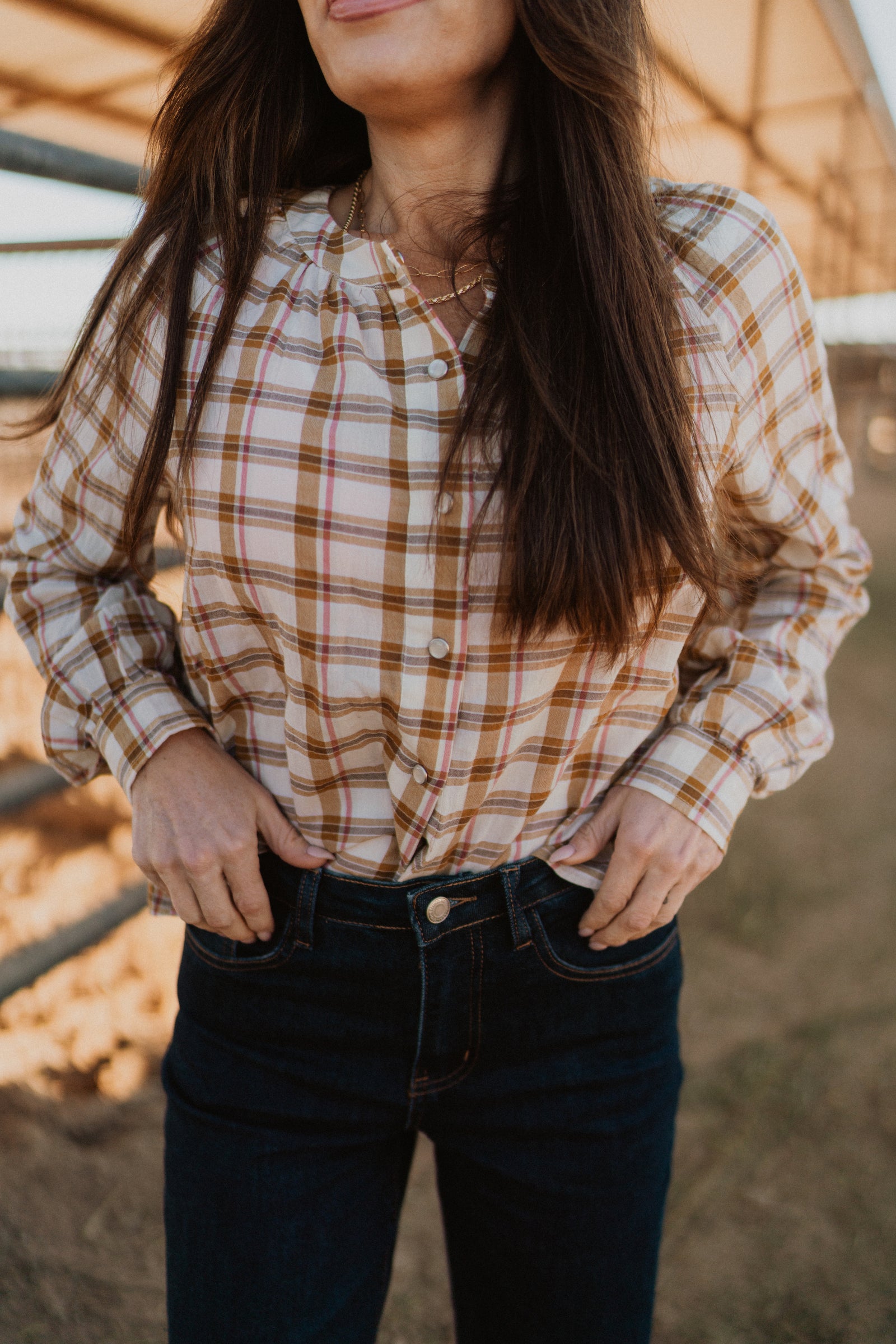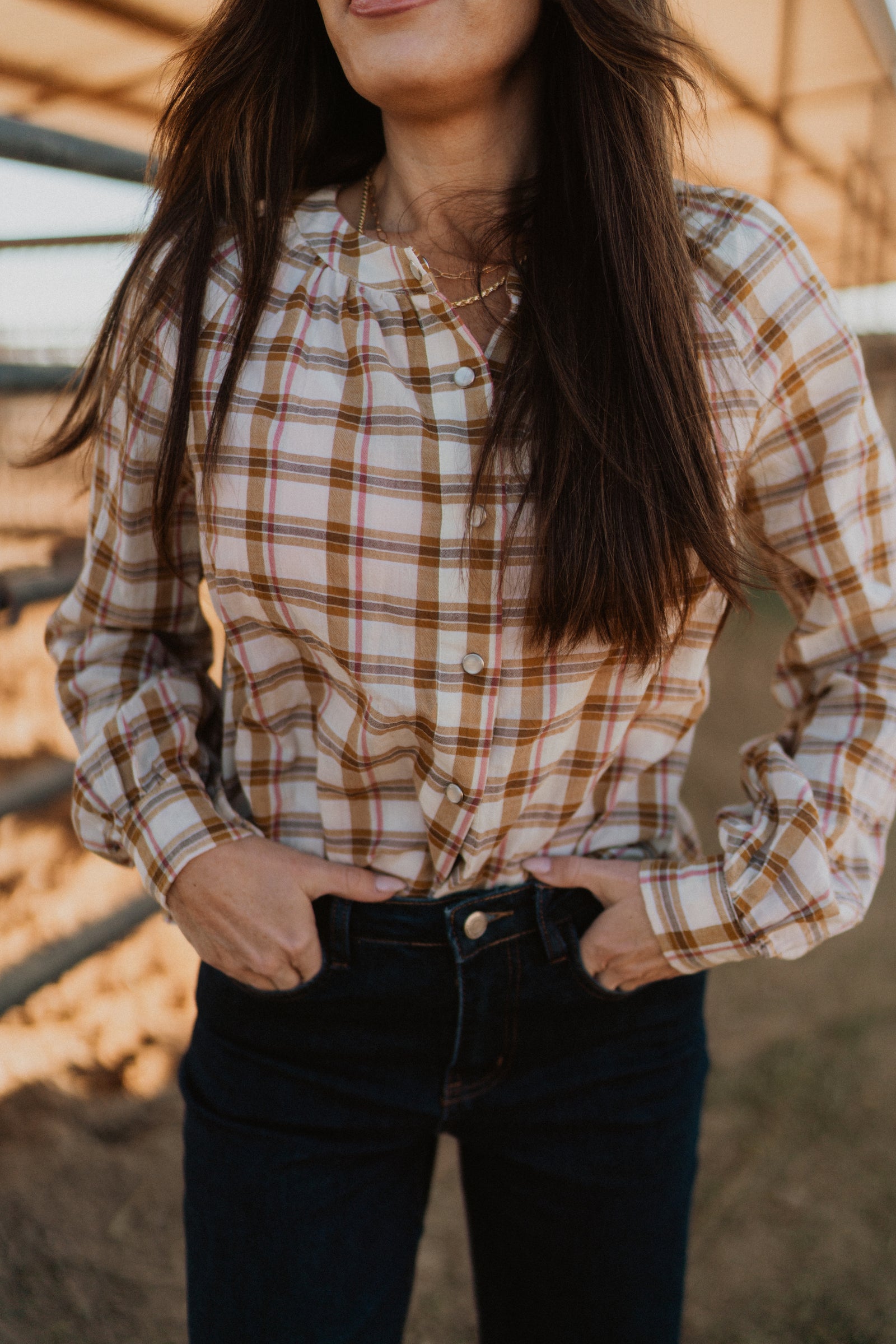 PLAID BUTTON UP BLOUSE SHIRTS