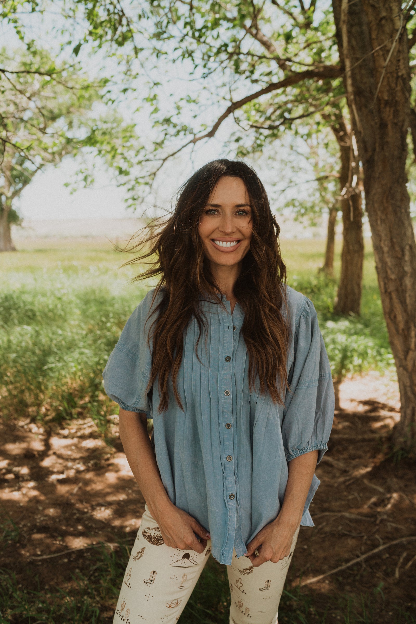 This top will surprise you in the best way possible when it comes to comfortability! We didn't want to take it off because the material was so soft. Loving the effortless styling you have with this Chrishell Top.