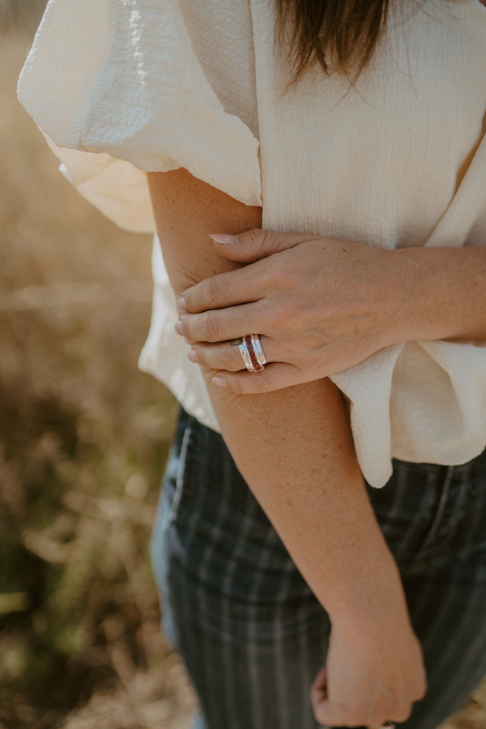 You can never go wrong with a silver band and a pop of red!