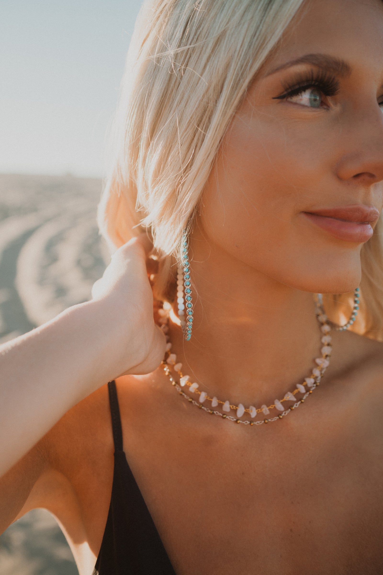 Our favorite raindrop earring in a new, delicate style! These earrings are 4 Inches long.