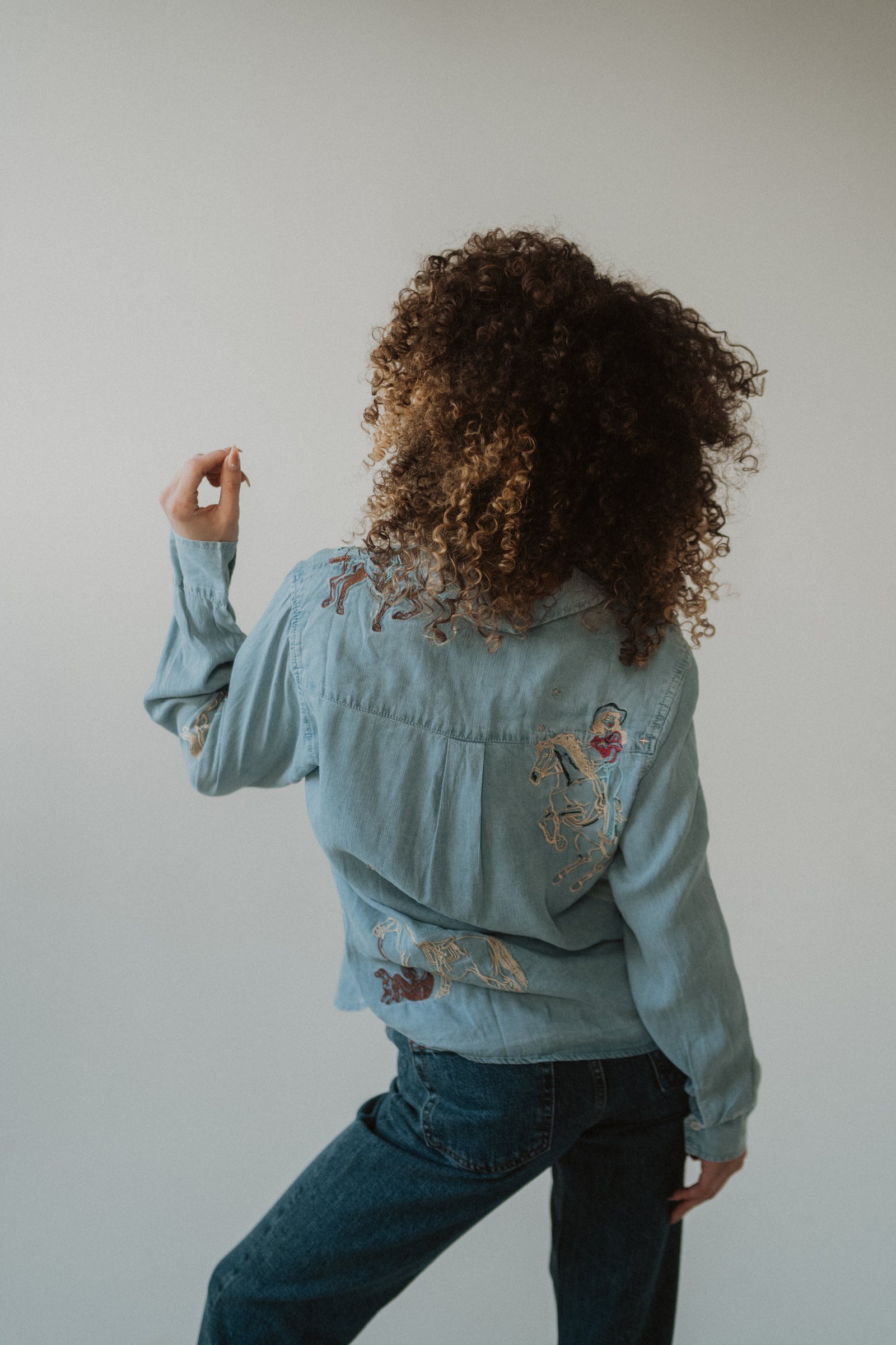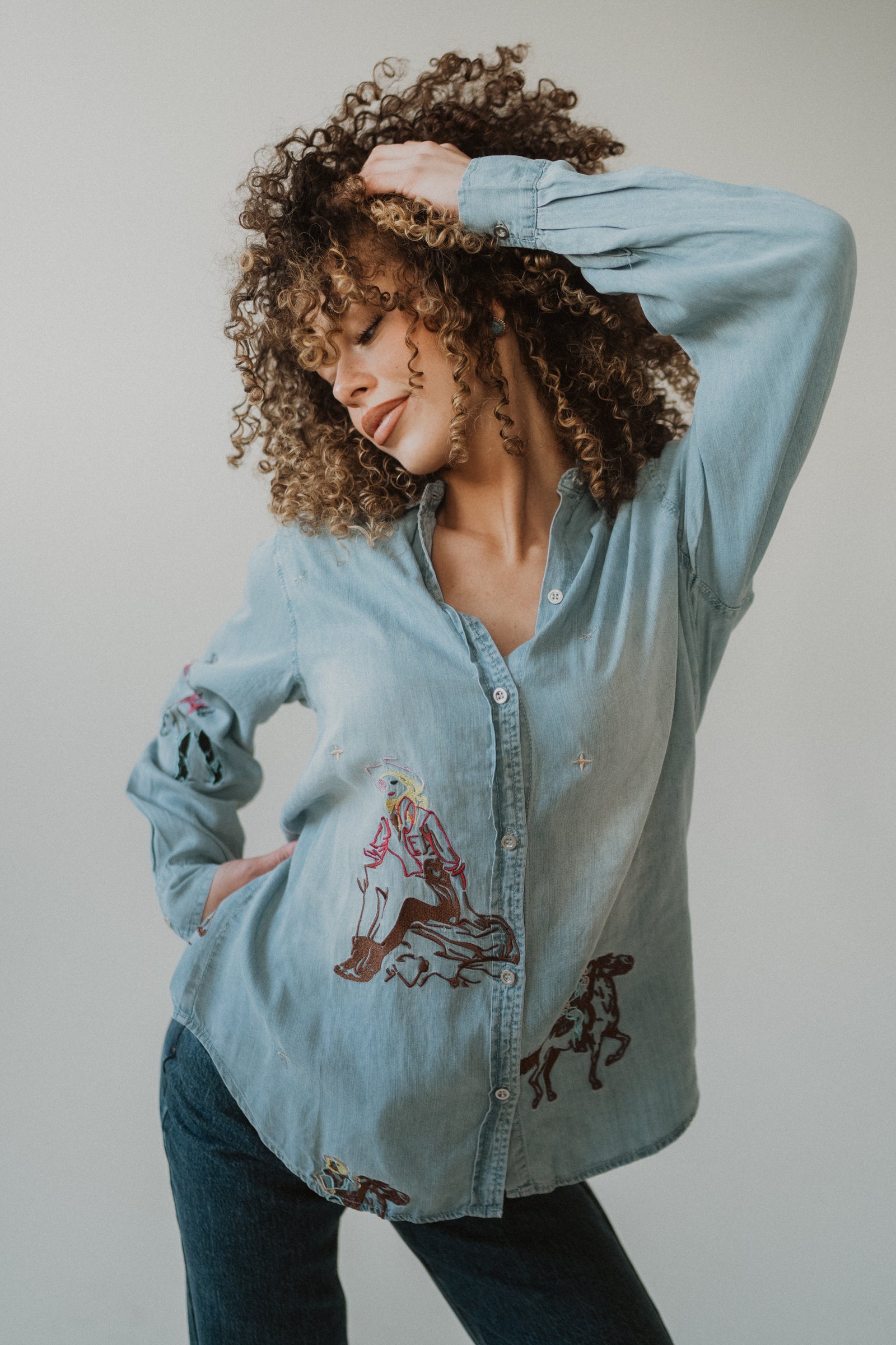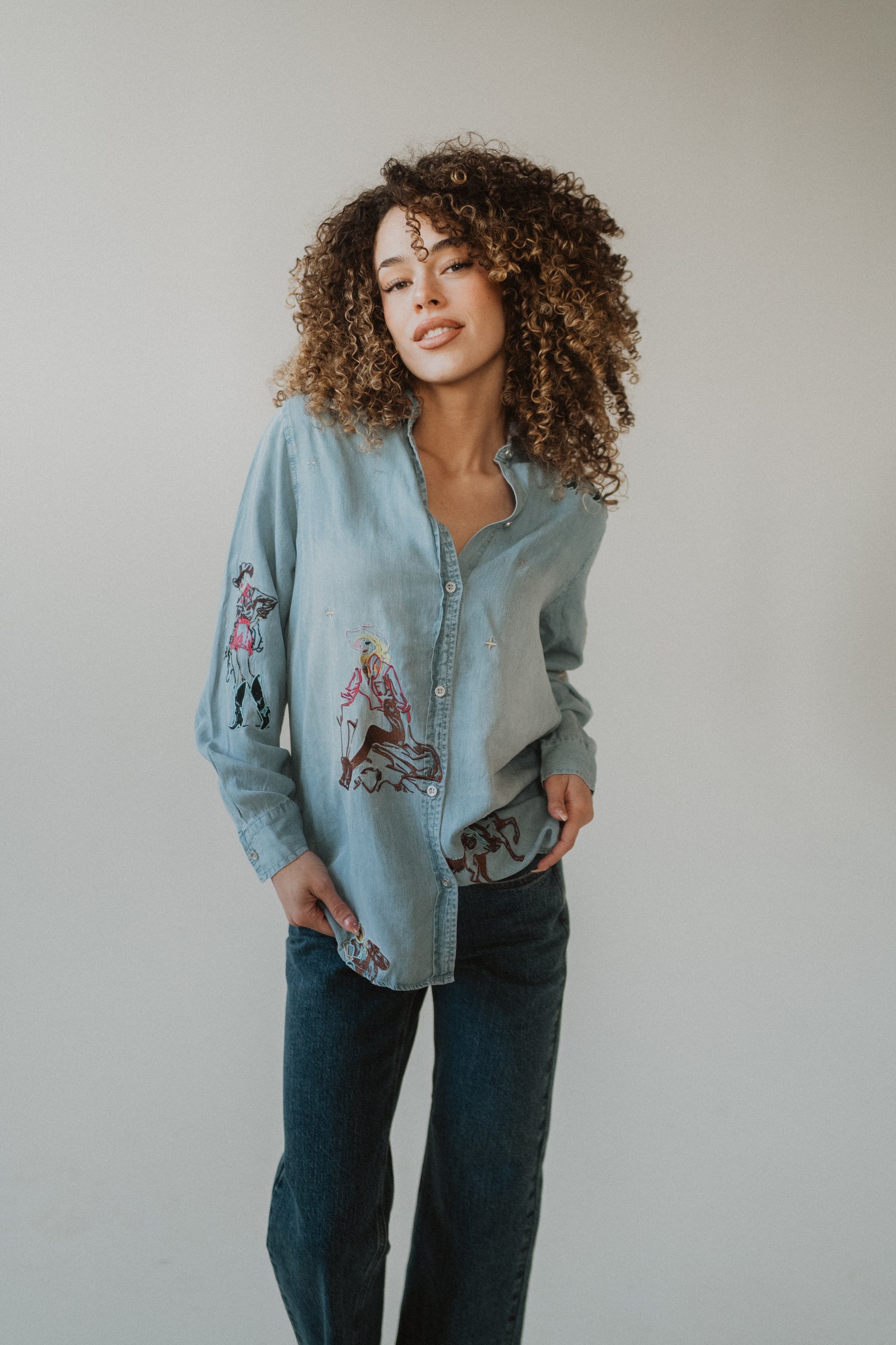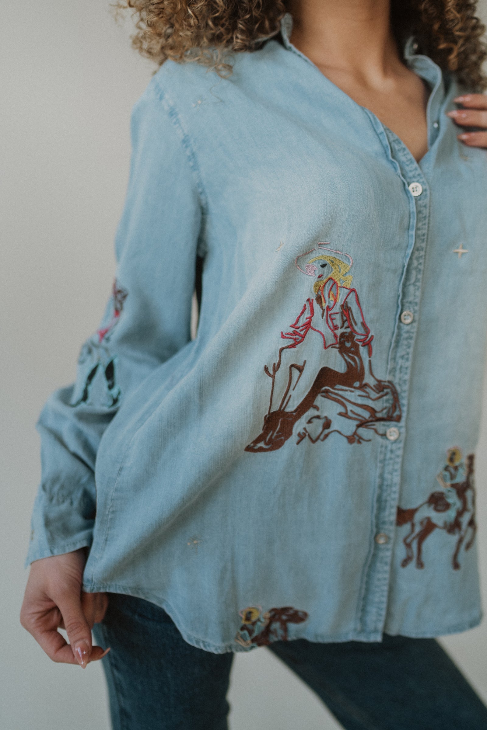 - Embroidered cowgirl motifs