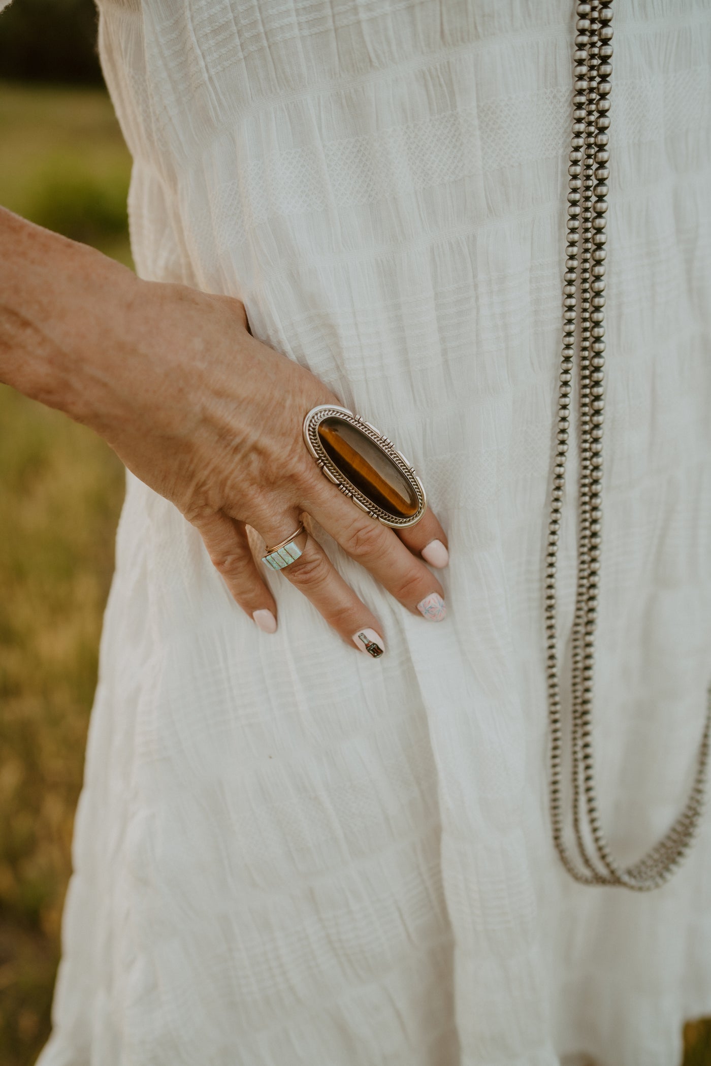 - Intricate silver detailing
