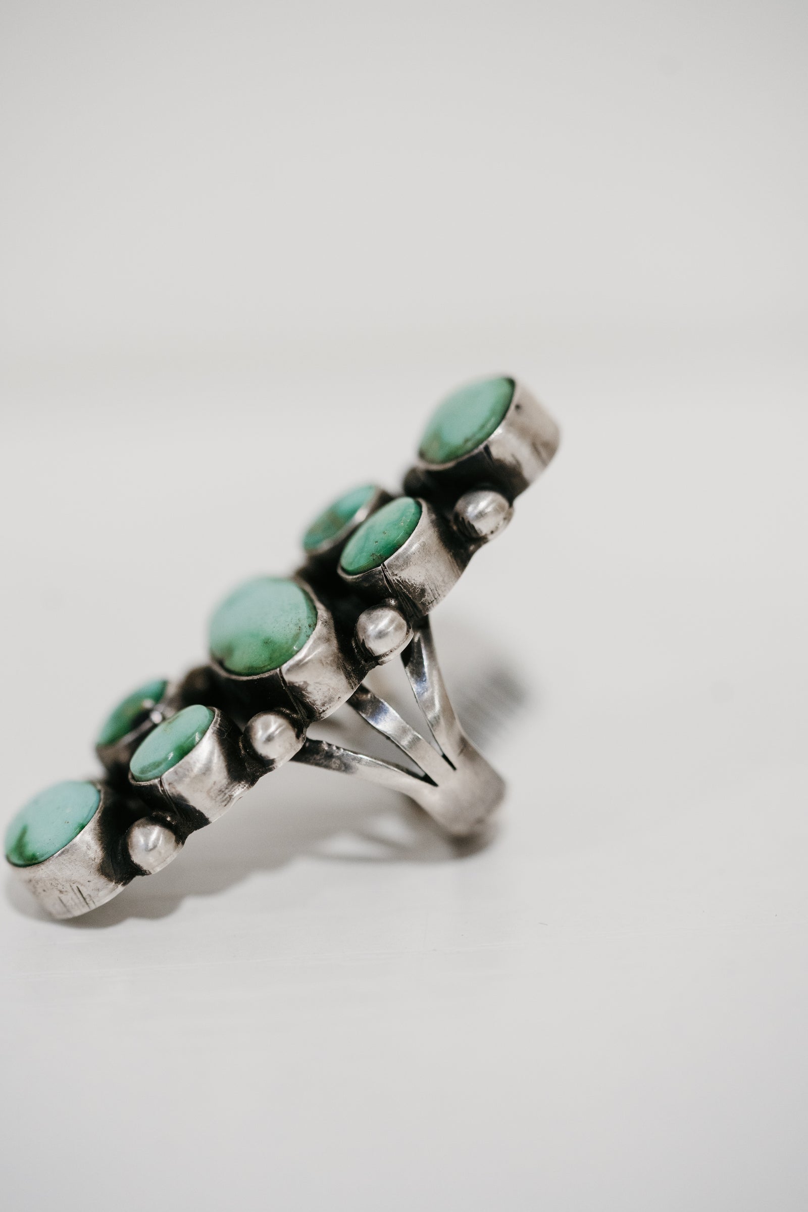 - Silver dot detailing on the outside of stones