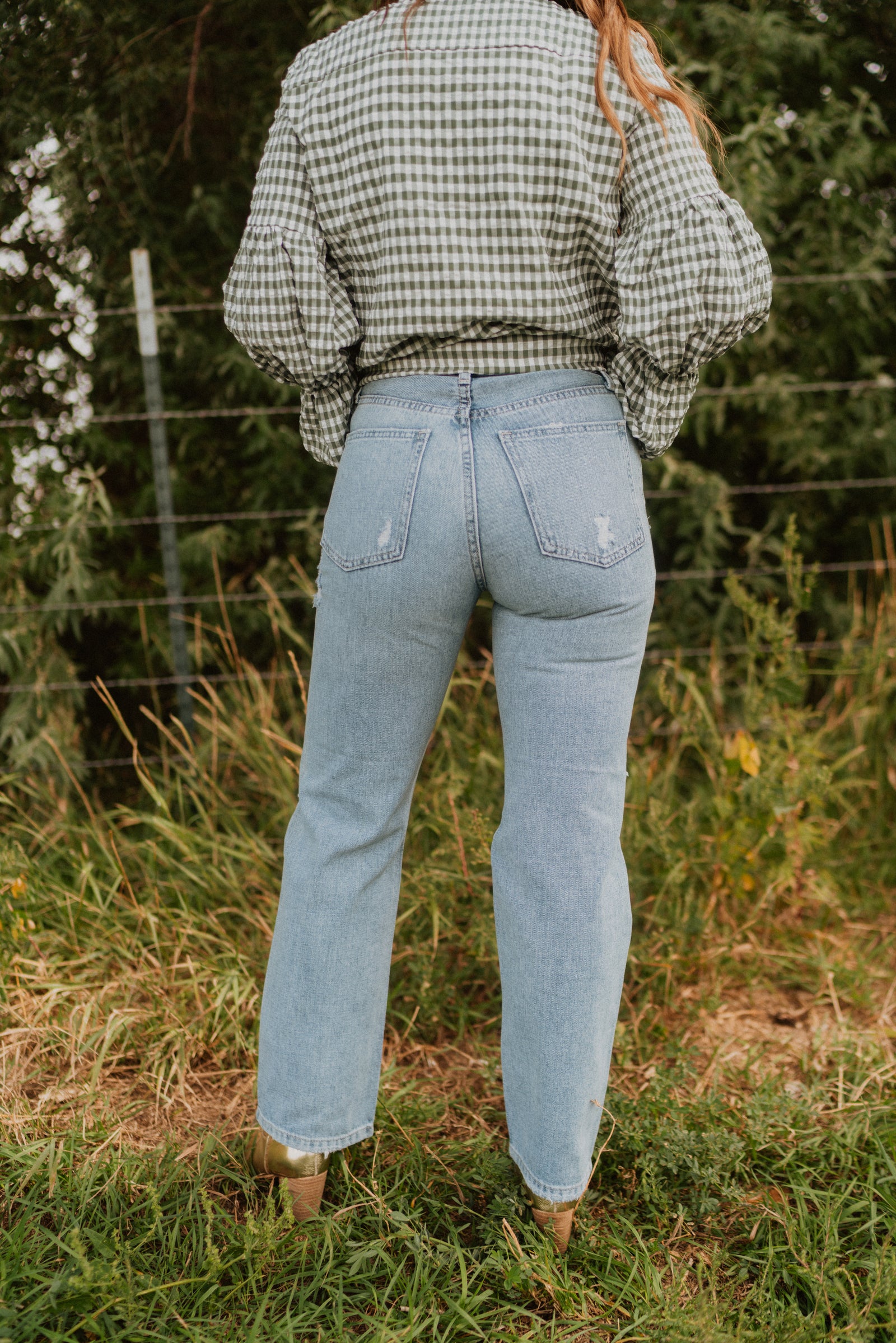 - Straight dad jeans