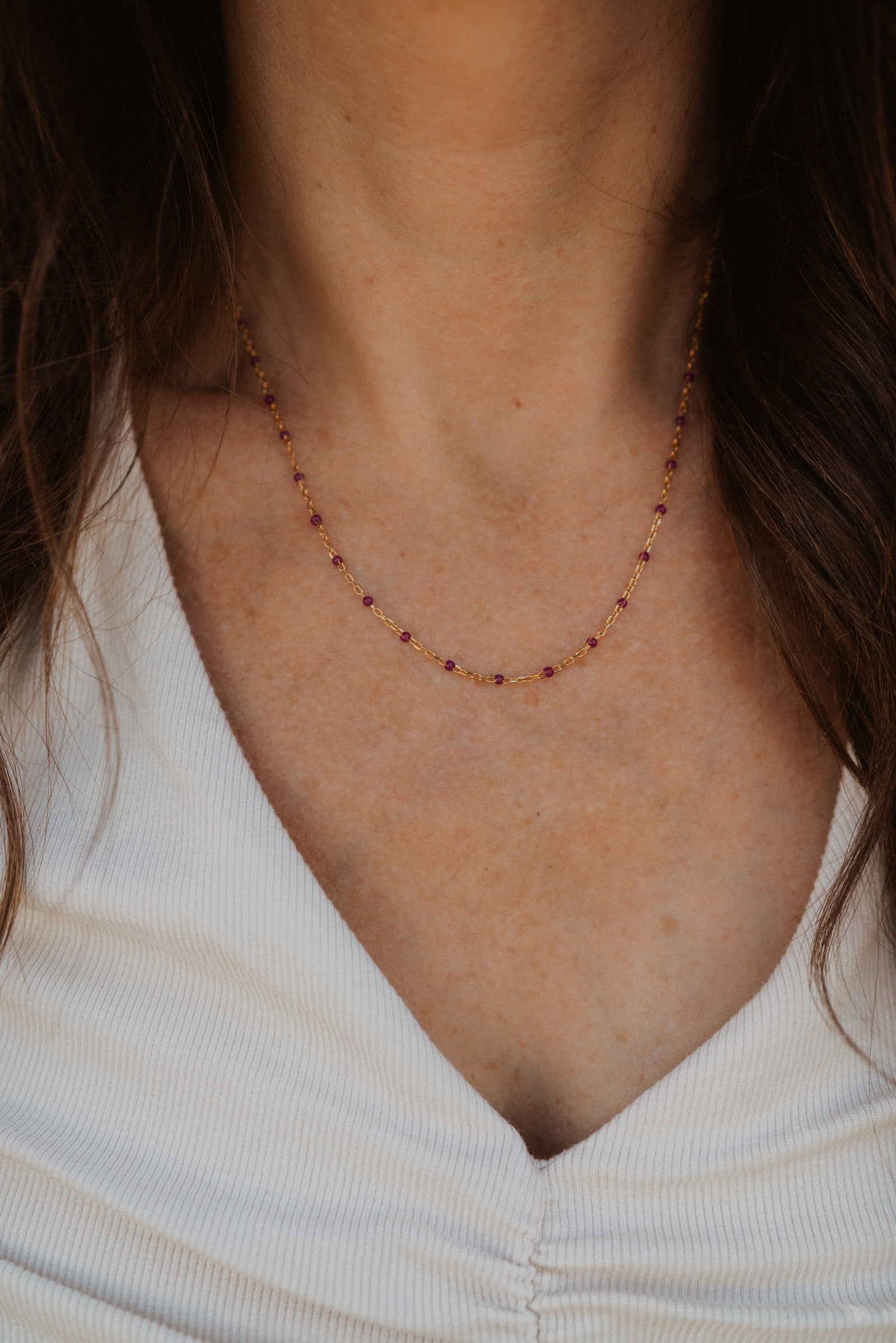 Maria Necklace | Gold + Dark Magenta - FINAL SALE