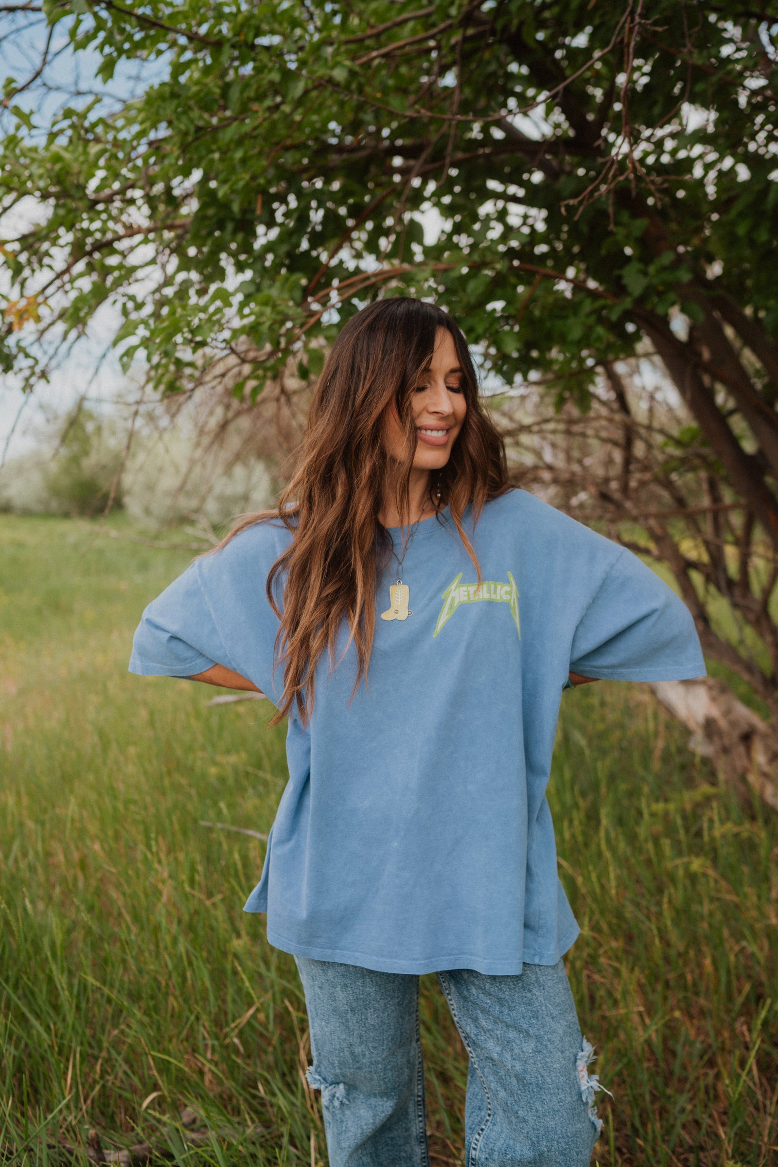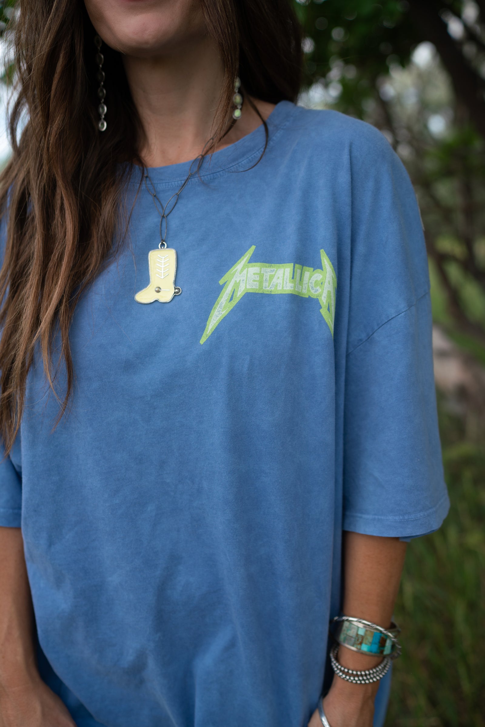 Tributing some of their best thrash tracks, Metallica revved up the adrenaline in their 1985 US Tour for their second studio album “Ride the Lightning.” Designed in a color that really packs a punch, with their logo left chest and tour details stamped on the back, this acid washed OS tee is a metal merch mega force.