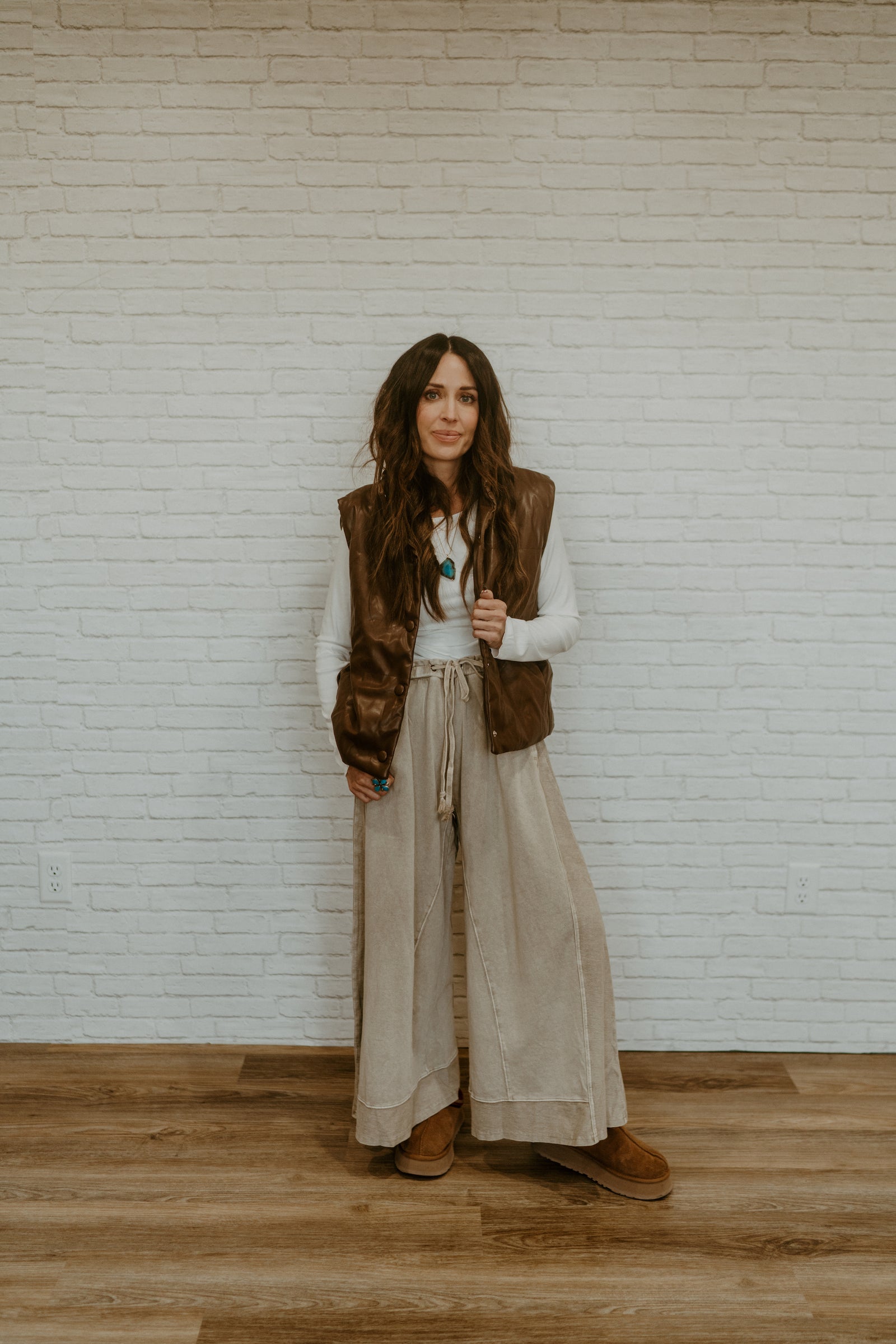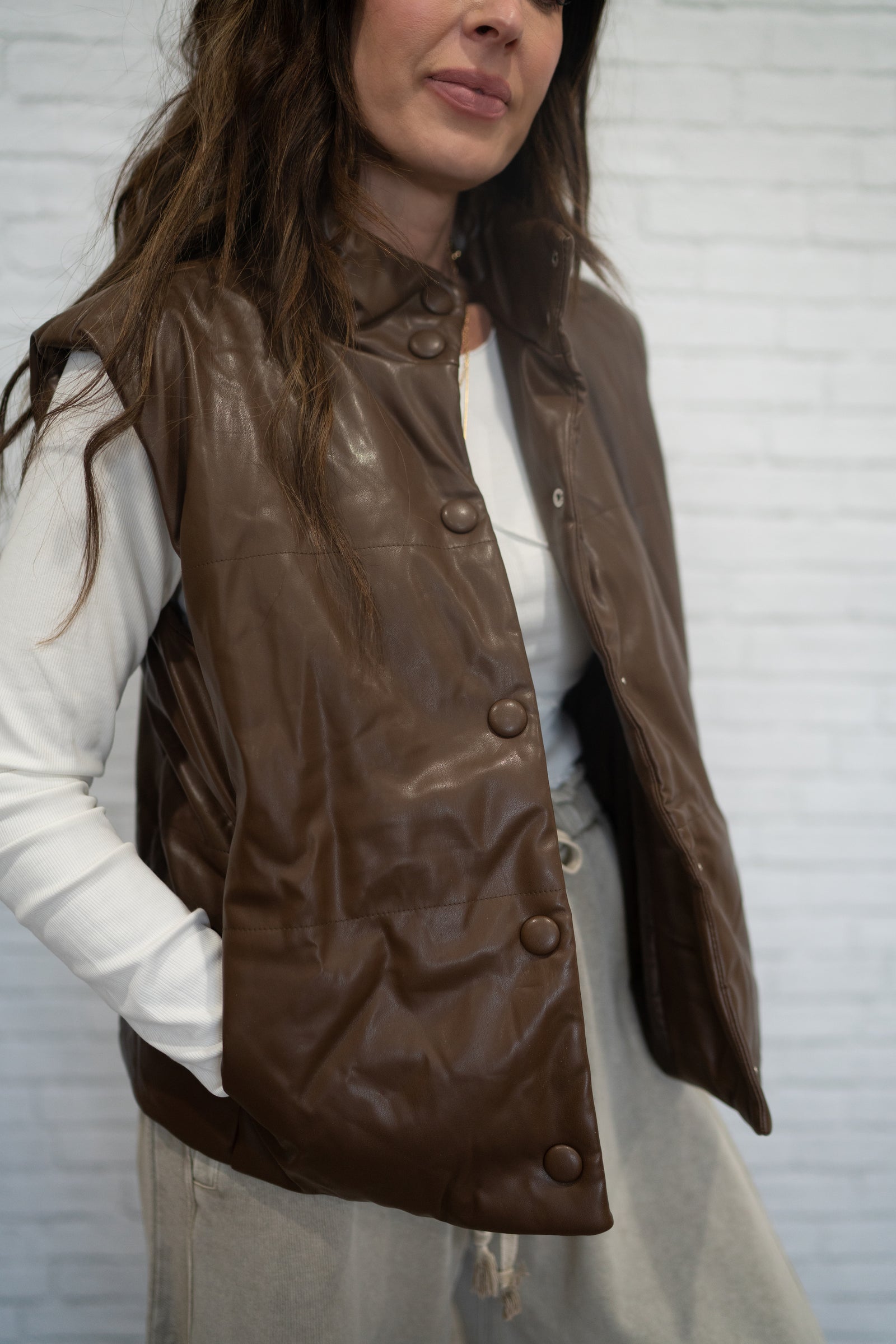 - Faux leather puffer vest