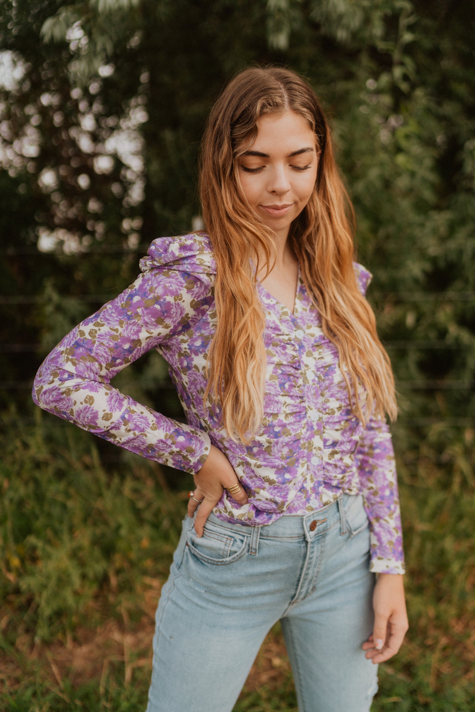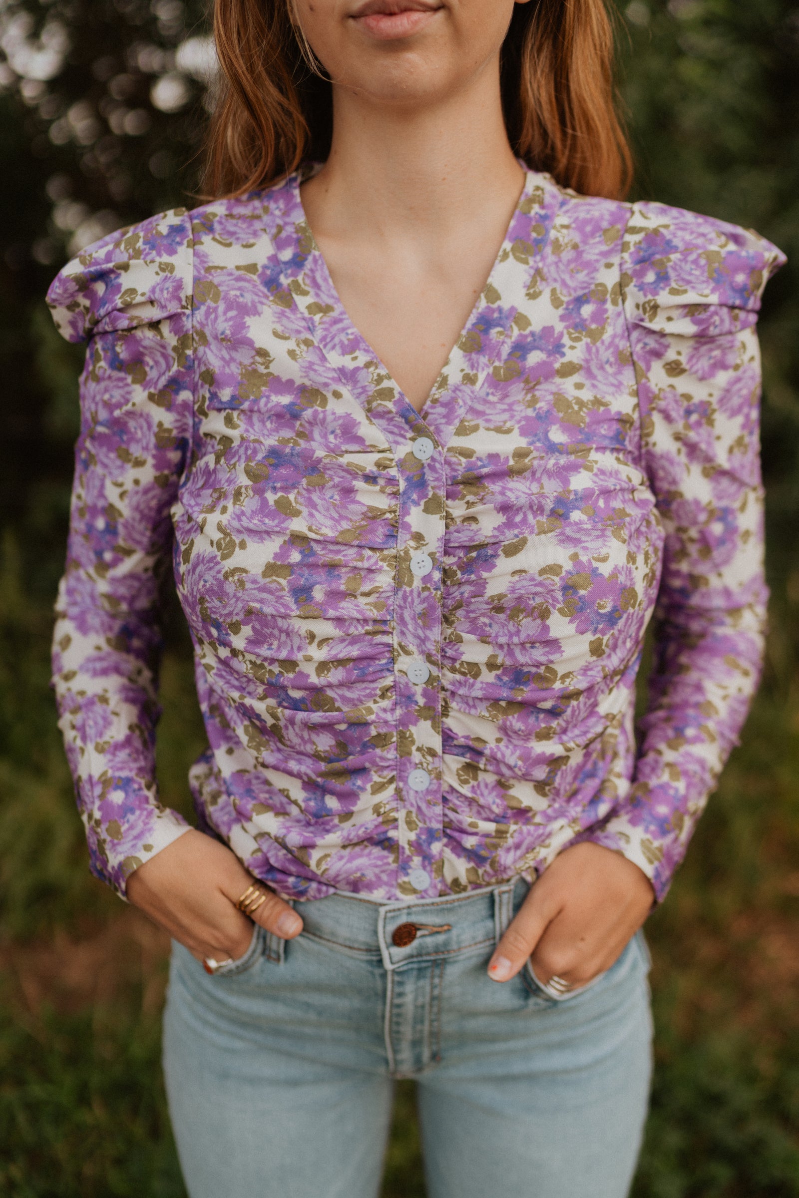 • Ruched button down