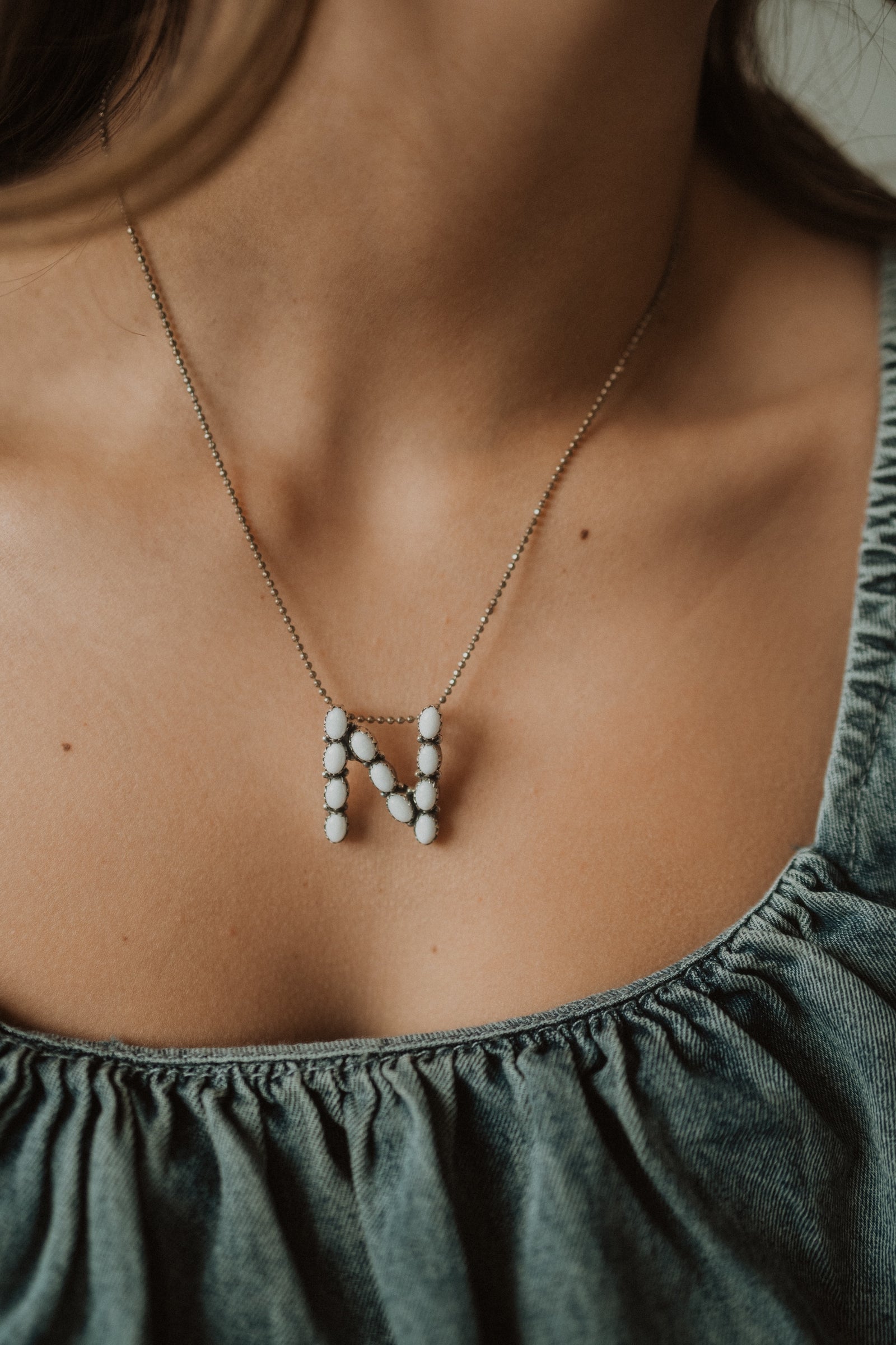 White Opal Initial Necklace